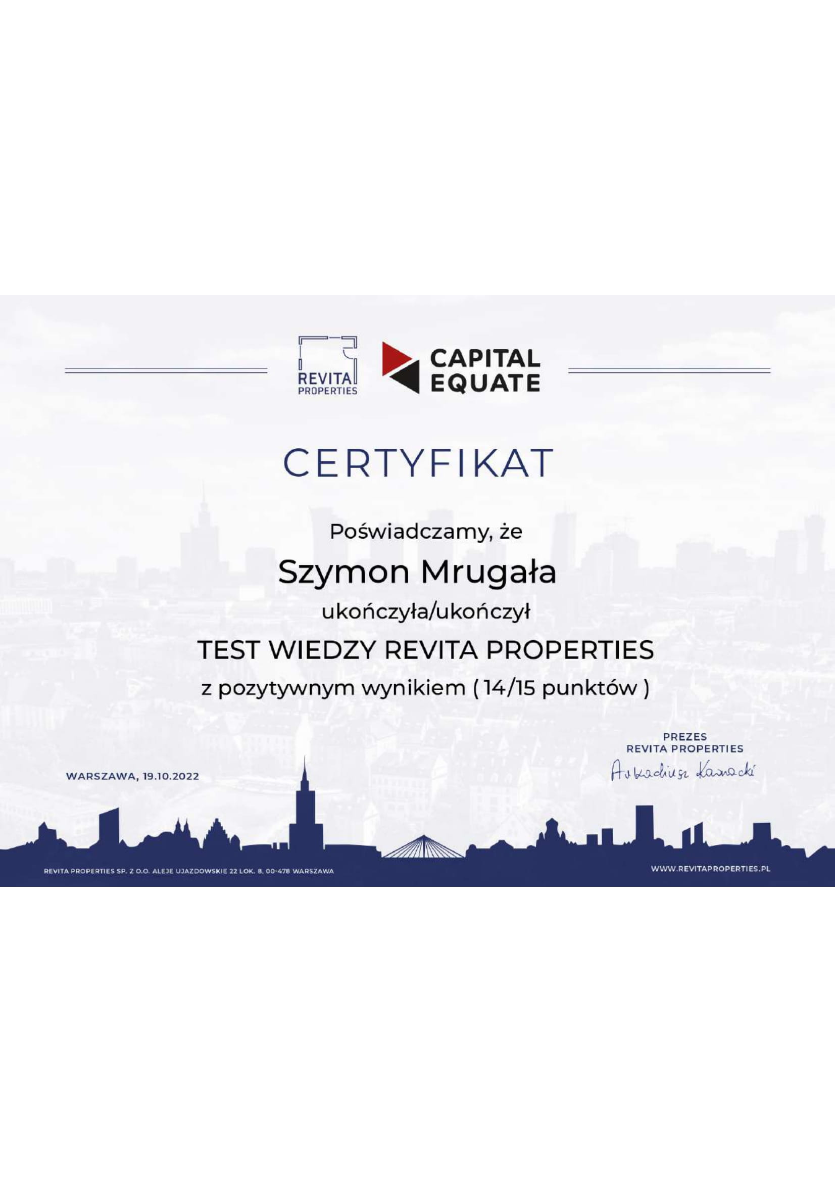 Certyfikaty, które prezentuję poniżej, to efekt wielu lat aktywnej pracy w branży finansowej – zarówno w roli doradcy, jak i edukatora. Obejmują one ukończone szkolenia branżowe, współprace z renomowanymi instytucjami finansowymi oraz potwierdzenia mojego udziału jako prelegent na konferencjach i wydarzeniach biznesowych. Każdy z tych dokumentów to dowód na to, że nieustannie rozwijam swoje kompetencje, dzielę się wiedzą i buduję zaufanie jako ekspert, który łączy teorię z praktyką.
